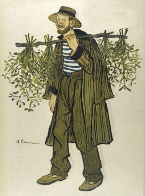 I love mistletoe and what a gorgeous illustration. I try to hand some over this period too, but had never thought of letting it hang on the door from epiphany -- wonderful idea.